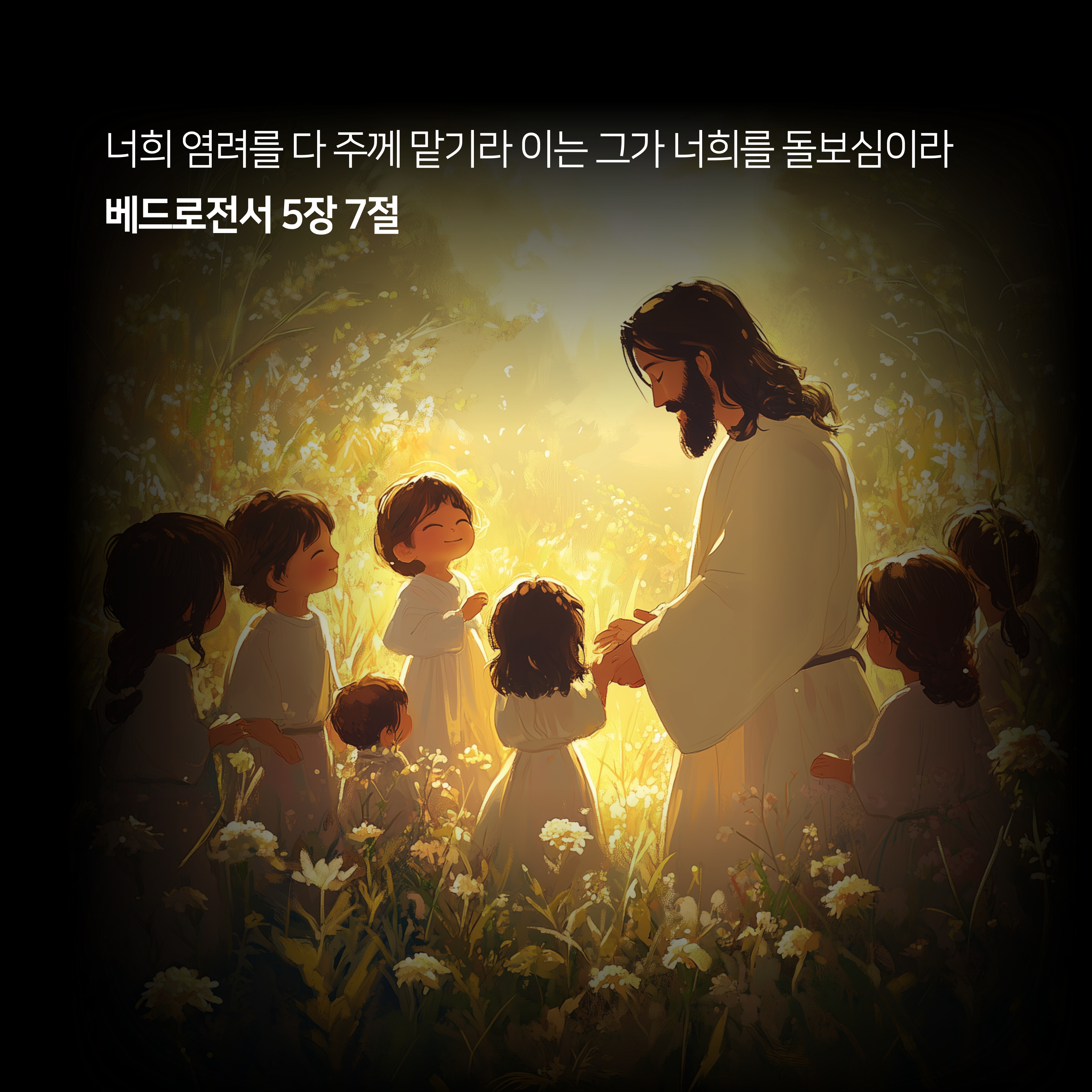 이 짧은 구절은 우리 삶 속의 모든 염려와 근심을 주님께 맡기라는 분명한 권면입니다. 우리가 살아가며 겪는 수많은 문제들, 불안한 미래, 풀리지 않는 관계의 매듭, 건강이나 재정의 어려움들까지도 모두 주님의 손에 올려드릴 수 있습니다.
