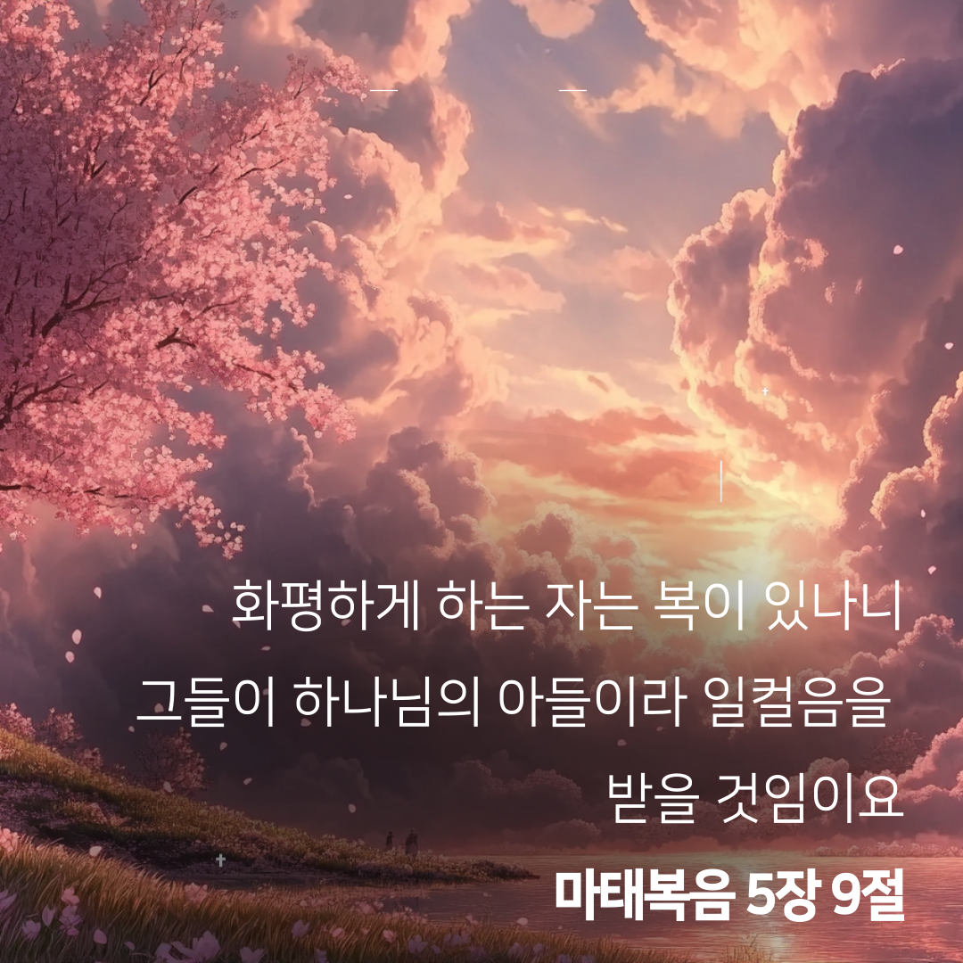 사랑의 하나님, 세상이 분열과 다툼 속에 흔들릴 때에도 주님의 평화를 전하는 자로 저를 부르시니 감사합니다. 화평하게 하는 자가 복이 있다고 말씀하신 주님의 음성을 오늘도 마음 깊이 새기게 하옵소서.