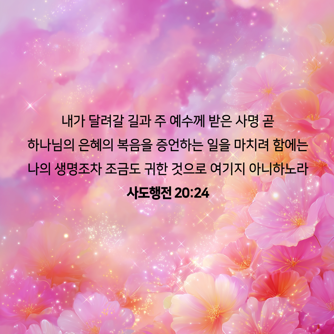 하나님의 은혜는 값없이 주어진 것이지만, 그 은혜를 세상에 증언하는 일에는 우리의 헌신과 순종이 필요합니다. 바울처럼 우리도 복음을 위해 살아가며, 생명조차 귀하게 여기지 않을 만큼 진리를 소중히 여기는 삶을 살아야 하겠습니다.